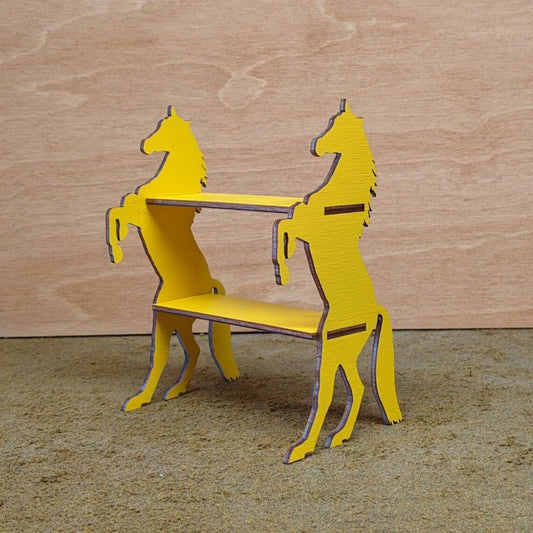 Super fun laser-cut wooden horse shelves to hold your micro minis and...