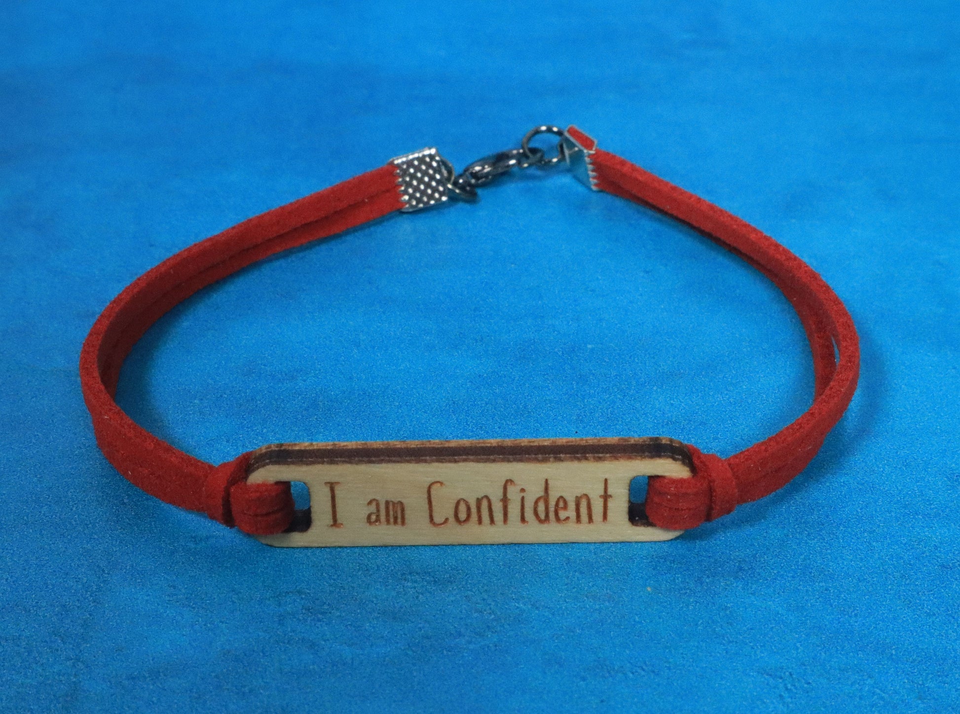 Boost confidence in style with this beautiful bracelet. The laser cut and engraved birch wood charm adds a unique touch, while the red faux suede cord and antique silver colored hardware provide a modern look. Achieve a sense of empowerment with this stylish accessory.