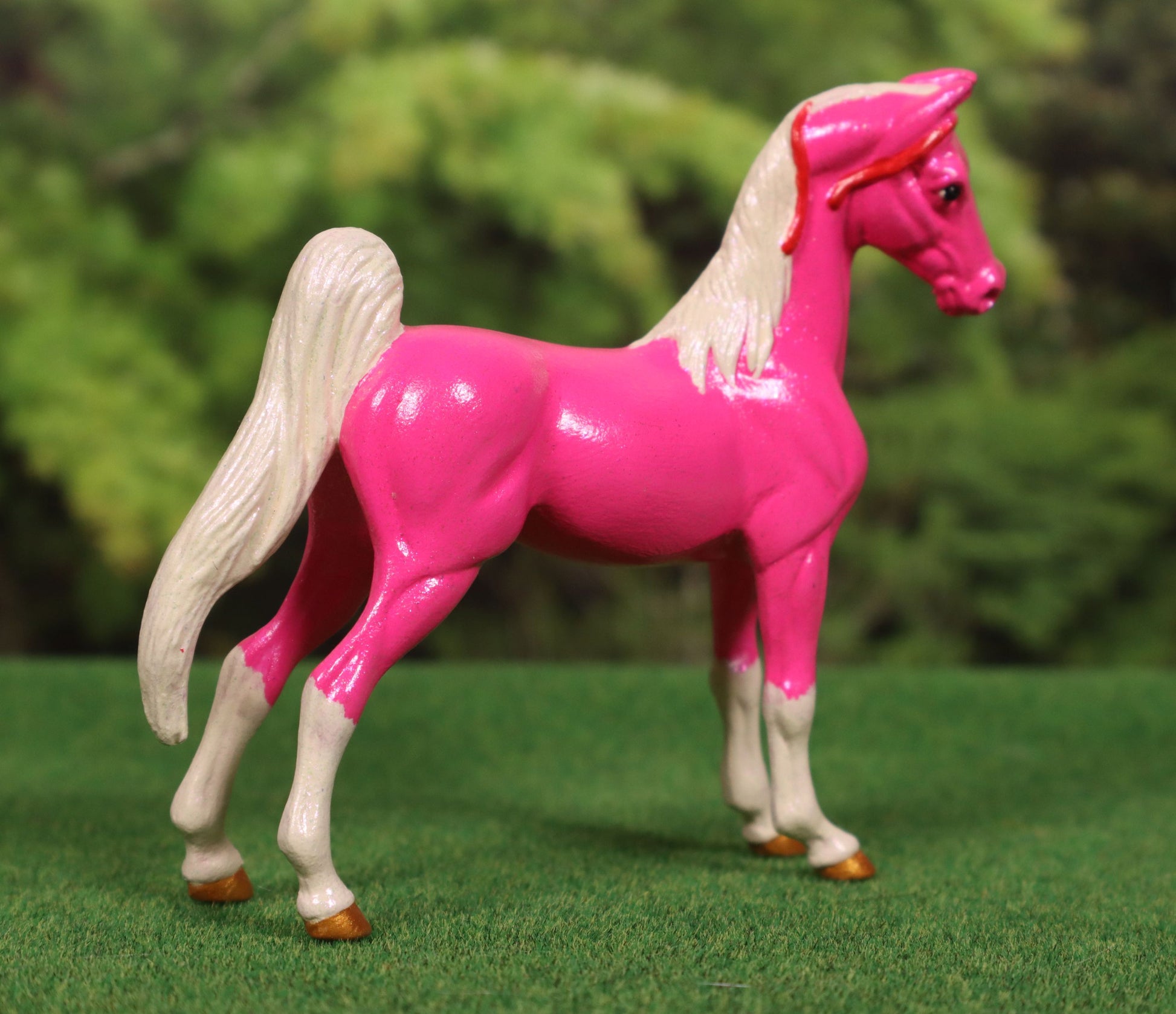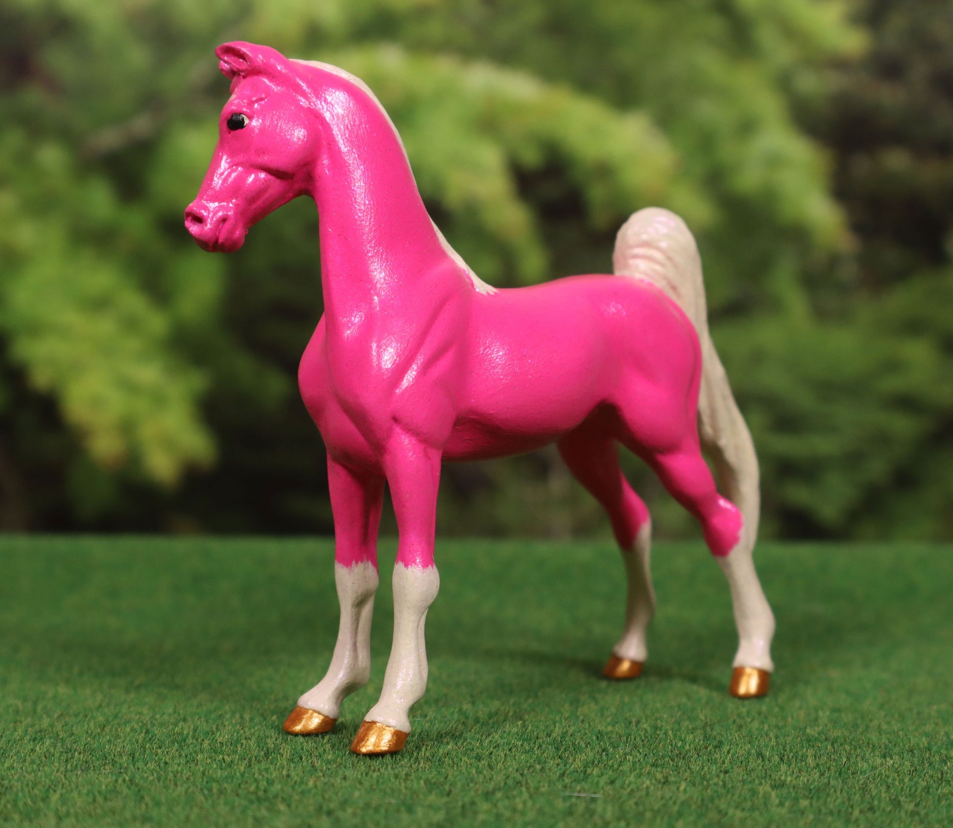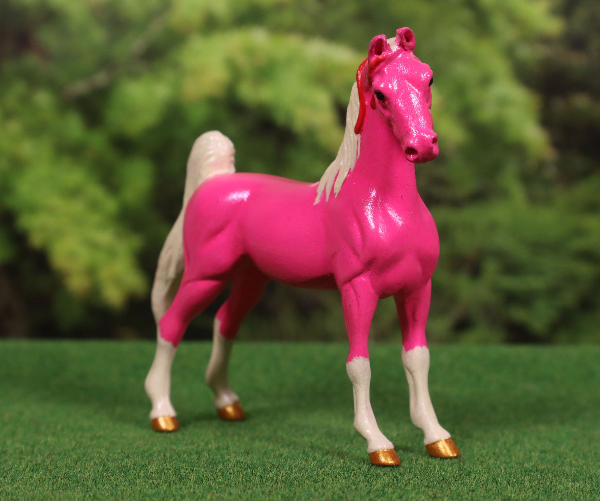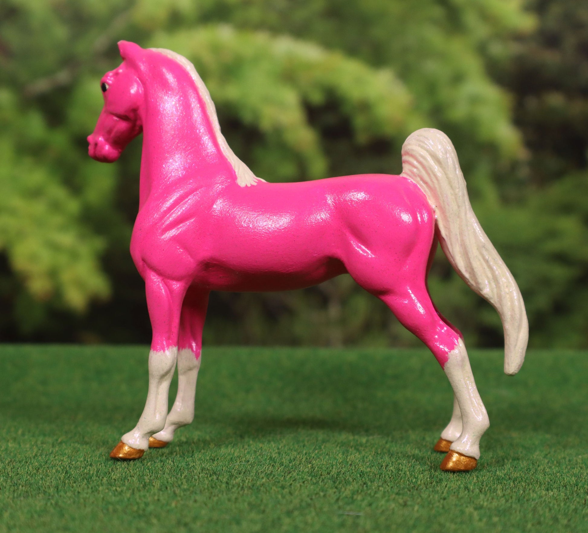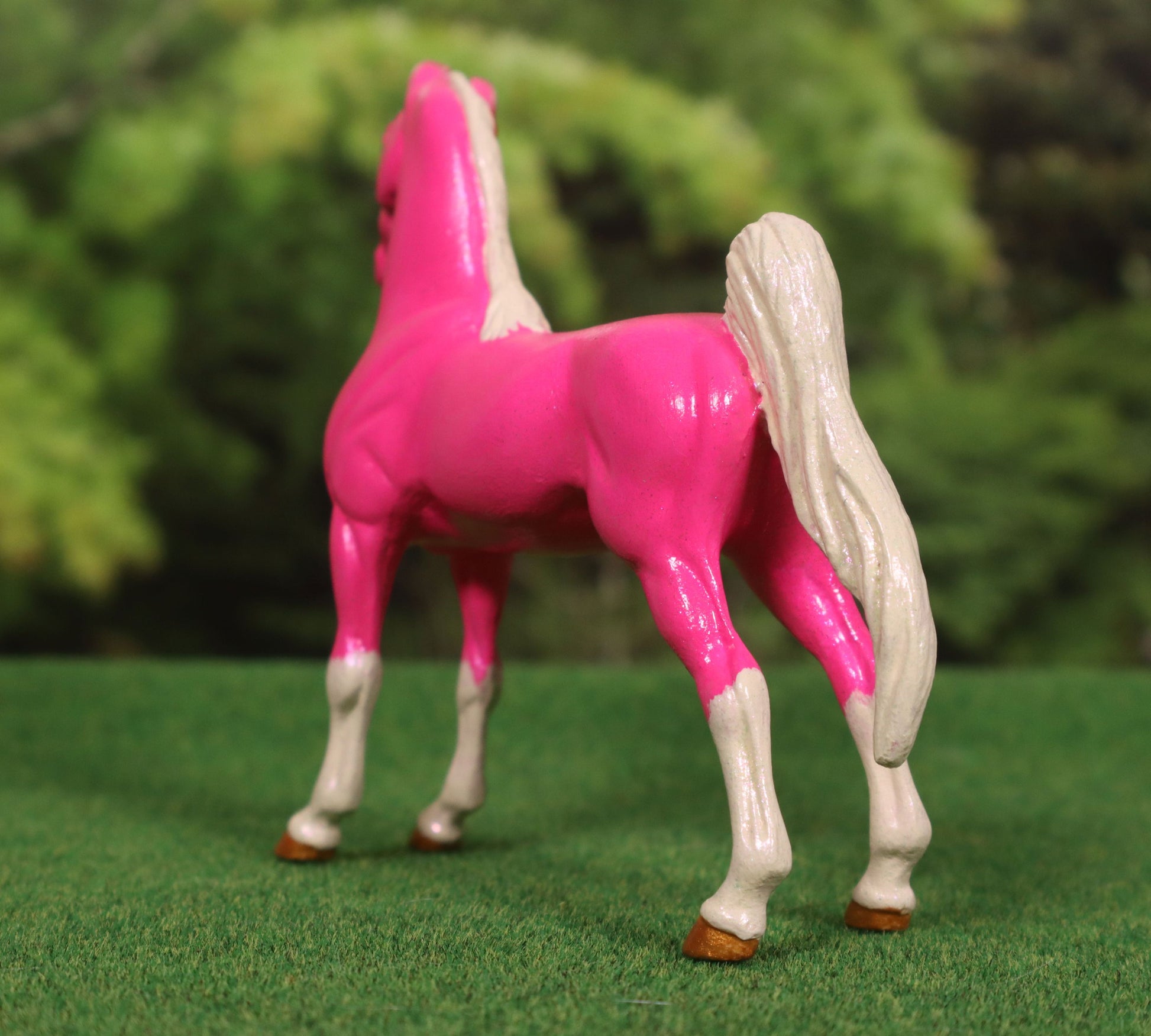 Add some sparkle and fun to your collection with this hand-painted Custom Breyer G2 American Saddlebred in hot pink palomino. The vibrant acrylics used give this horse a unique look that'll definitely stand out in your stable!