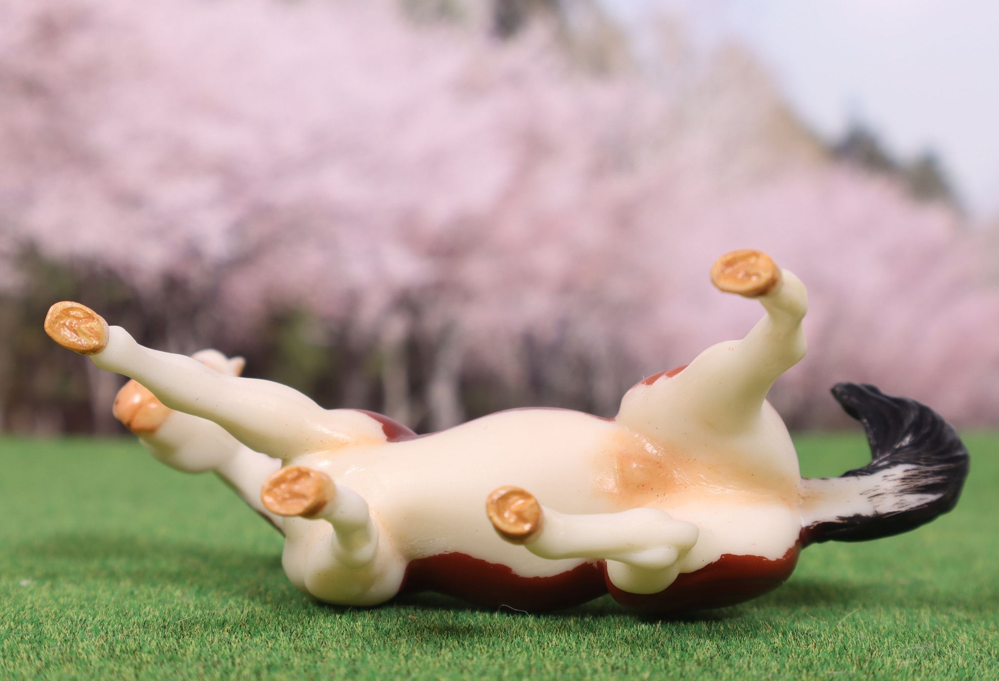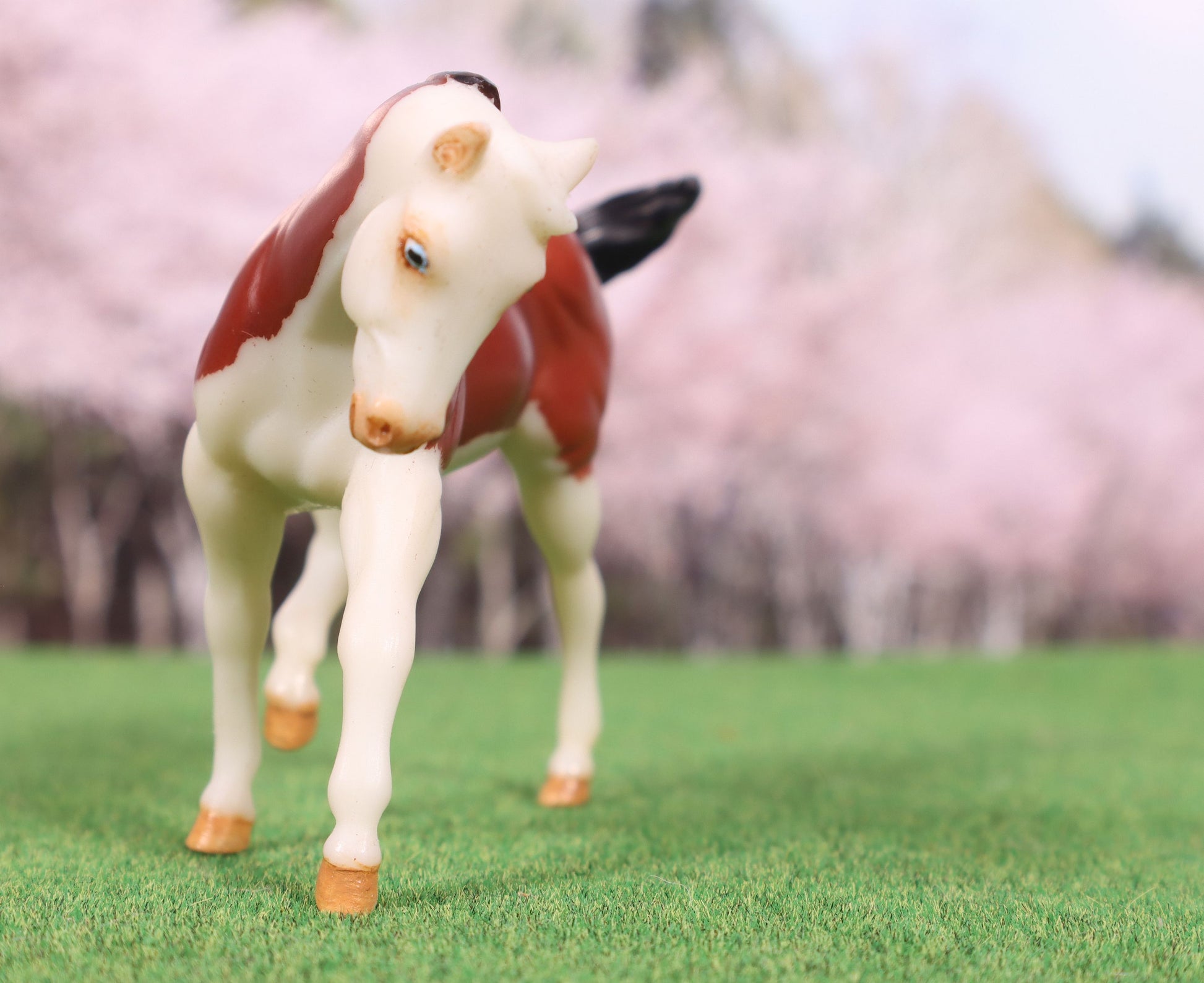 Fairly recently, within the last few years, I've started etching some horses. This is one of the very first ones that I tried. He is the Breyer Stablemate G2 Stockhorse in chestnut that I etched to a splash white pattern. He also has carved ears and hooves. I then added paint to detail his face, hooves, and skin. He was sprayed with a sealer to protect the painted detailing.