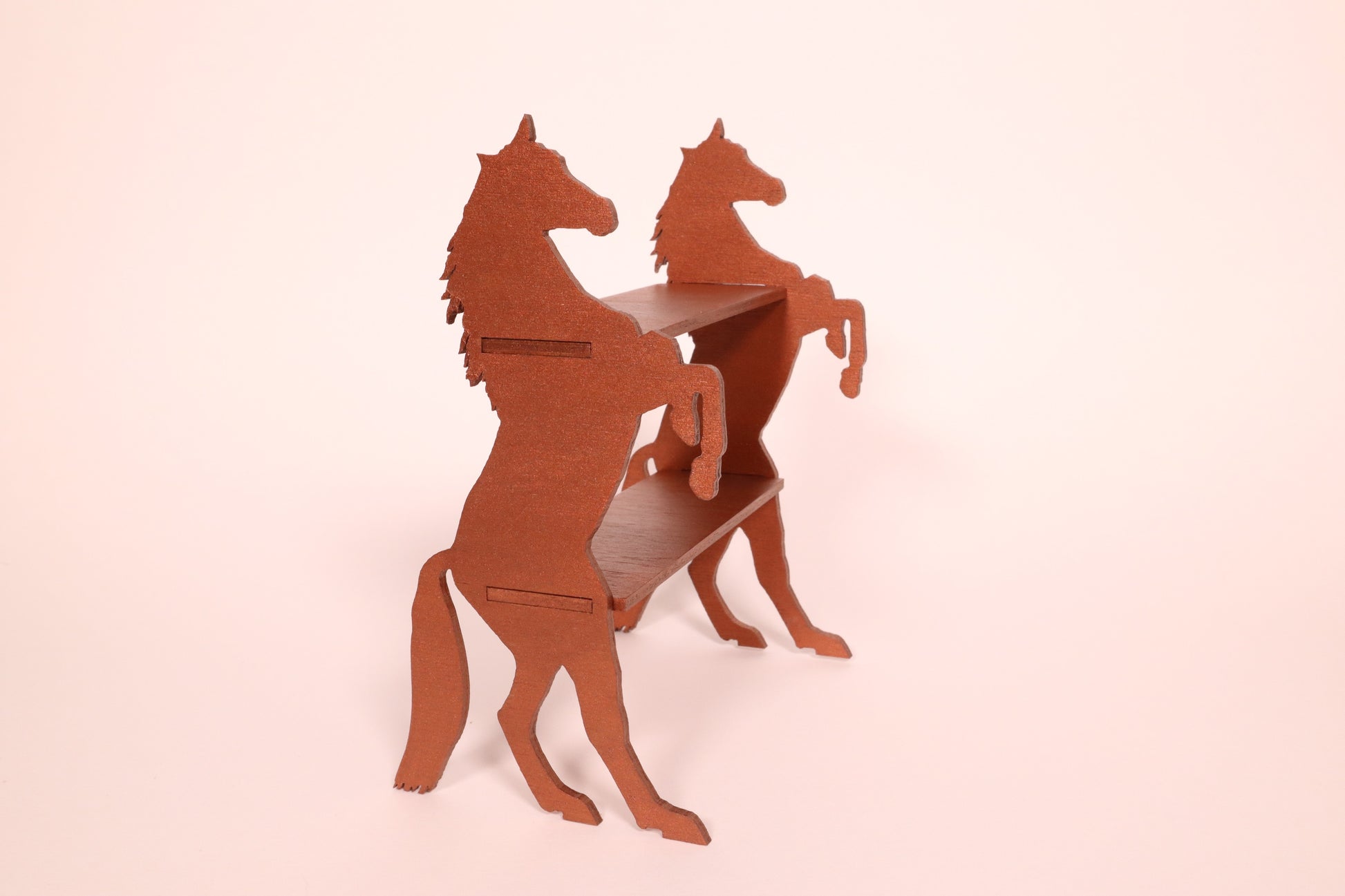 Super fun laser-cut wooden horse shelf to hold your micro minis and all sorts of other fun miniatures!  Use these to display your micros, as a prop in your scale barn, show photos, live show set ups, or?  Lots of fun possibilities!