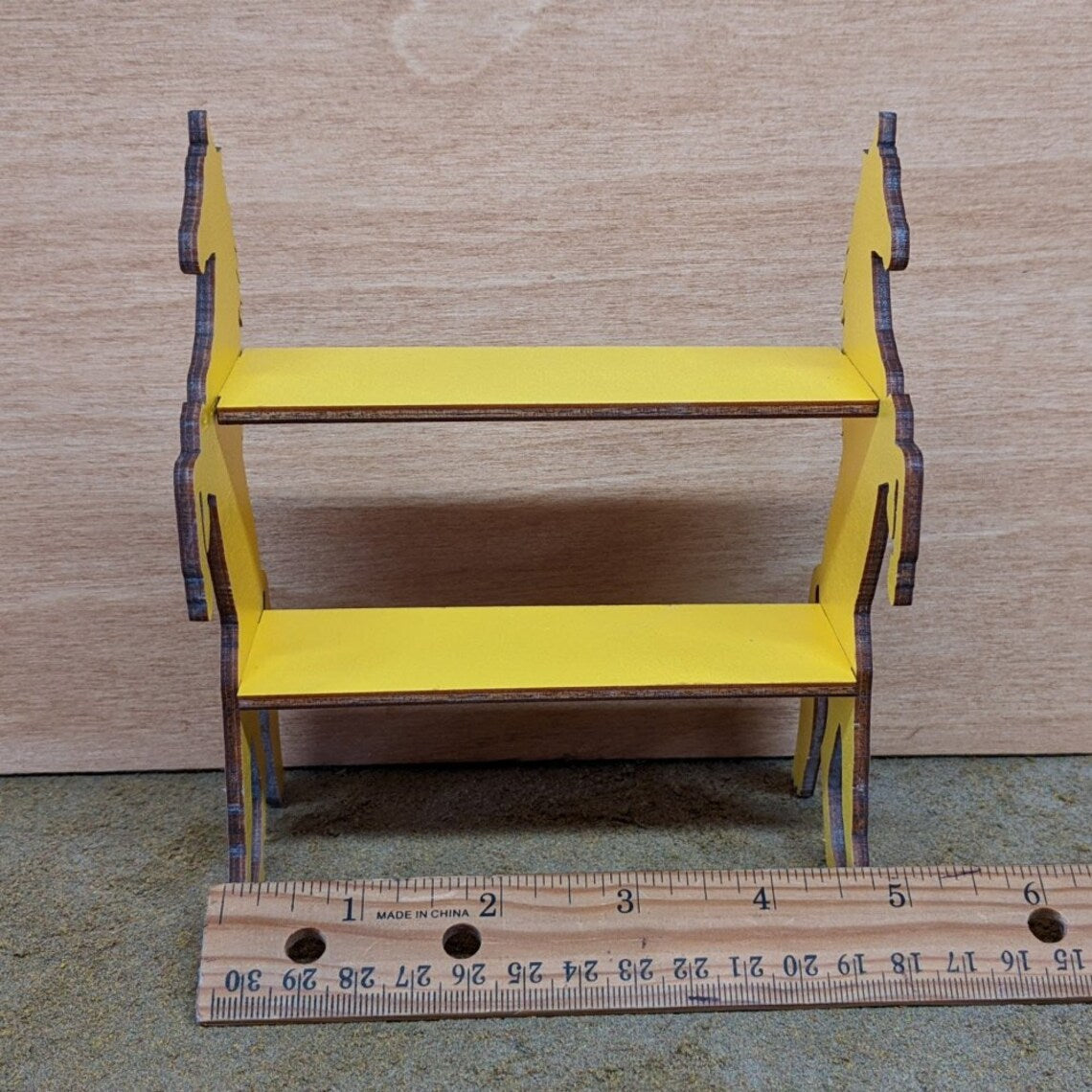 **Please note: yellow shelf, doll, miniatures on shelves, and ruler, not included with this product, they are only examples to show different angles, size, and fun ways to use your new Micro Horse shelf**