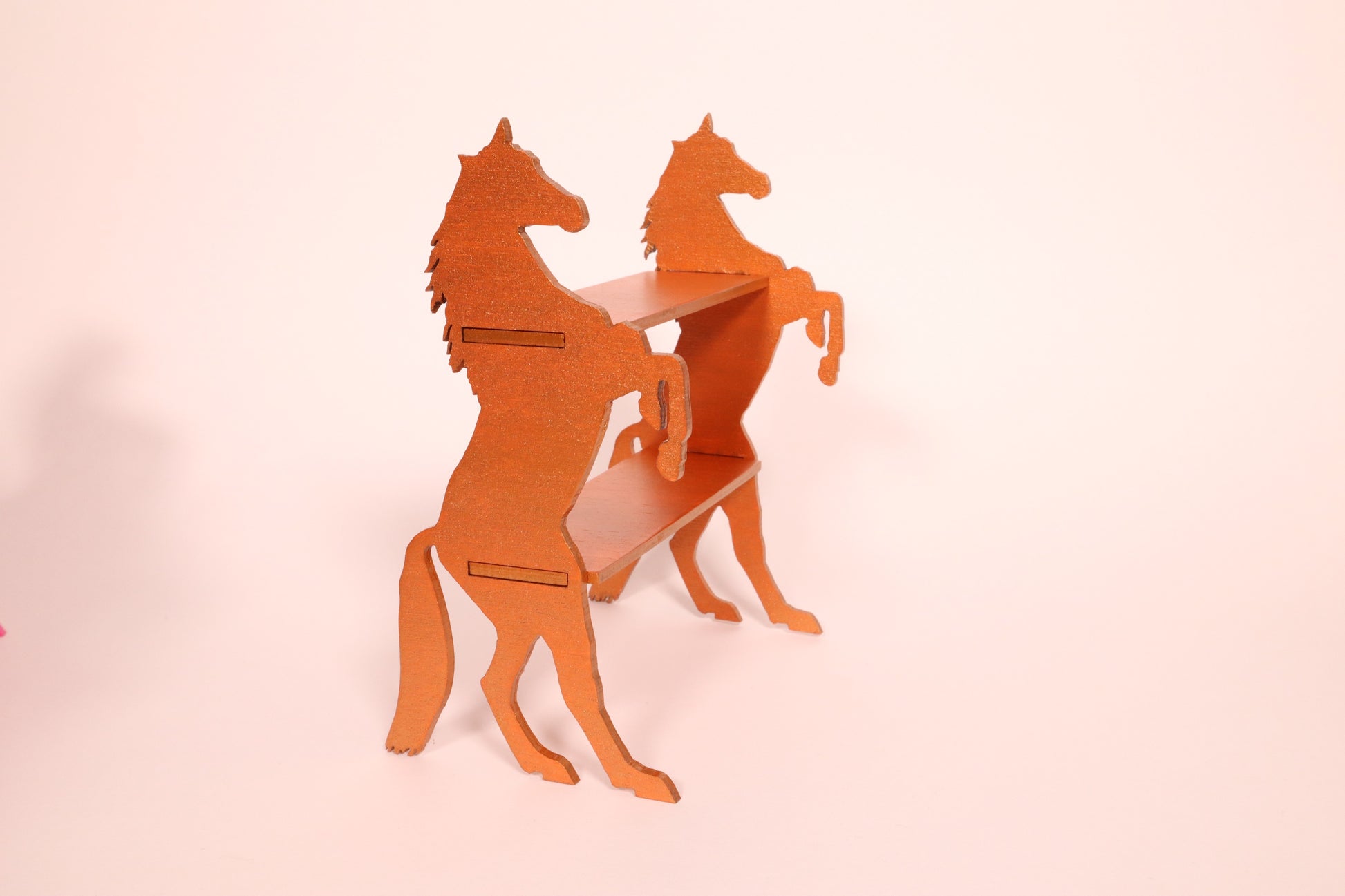 Super fun laser-cut wooden horse shelf to hold your micro minis and all sorts of other fun miniatures!  Use these to display your micros, as a prop in your scale barn, show photos, live show set ups, or?  Lots of fun possibilities!