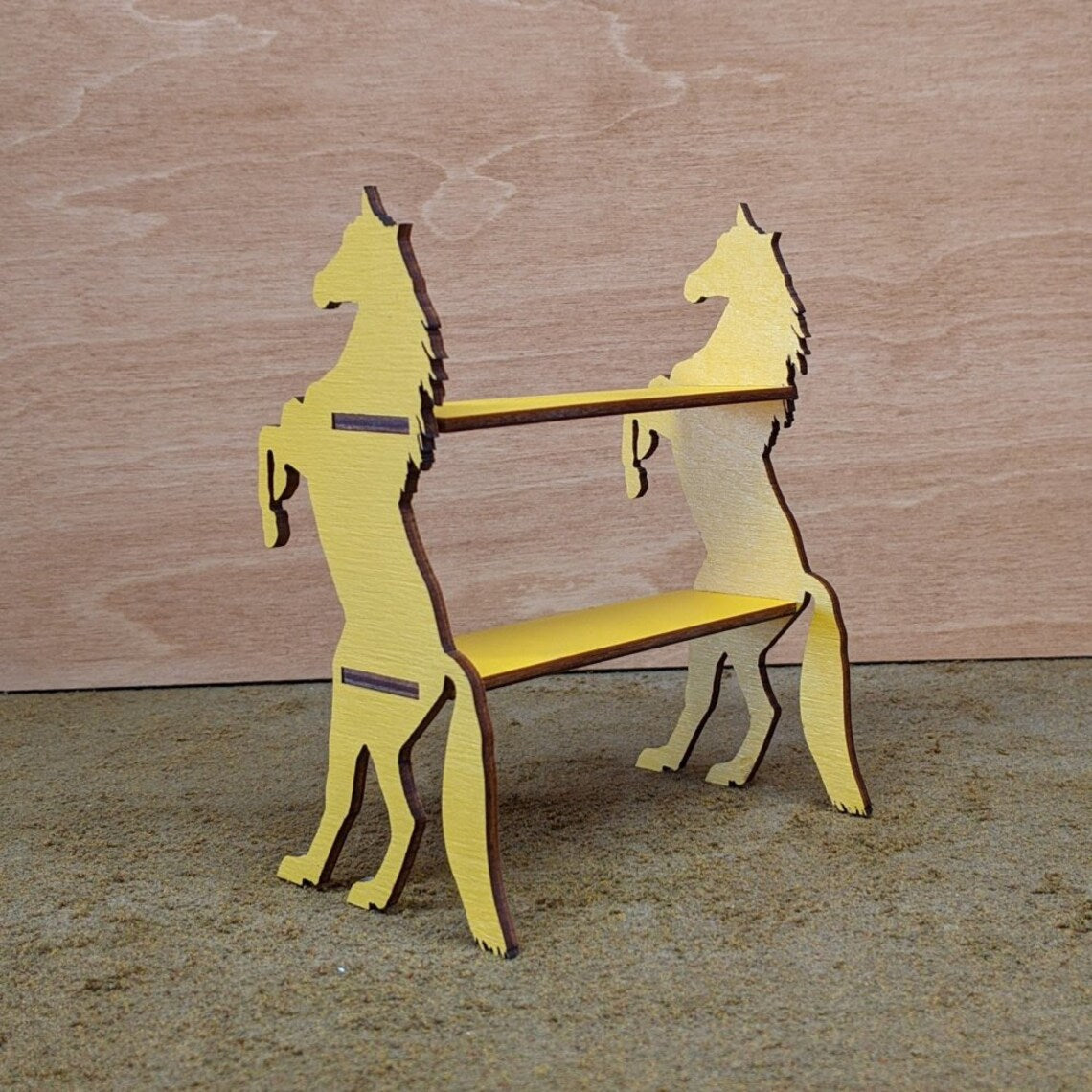 Super fun laser-cut wooden horse shelf to hold your micro minis and all sorts of other fun miniatures!  Use these to display your micros, as a prop in your scale barn, show photos, live show set ups, or?  Lots of fun possibilities!