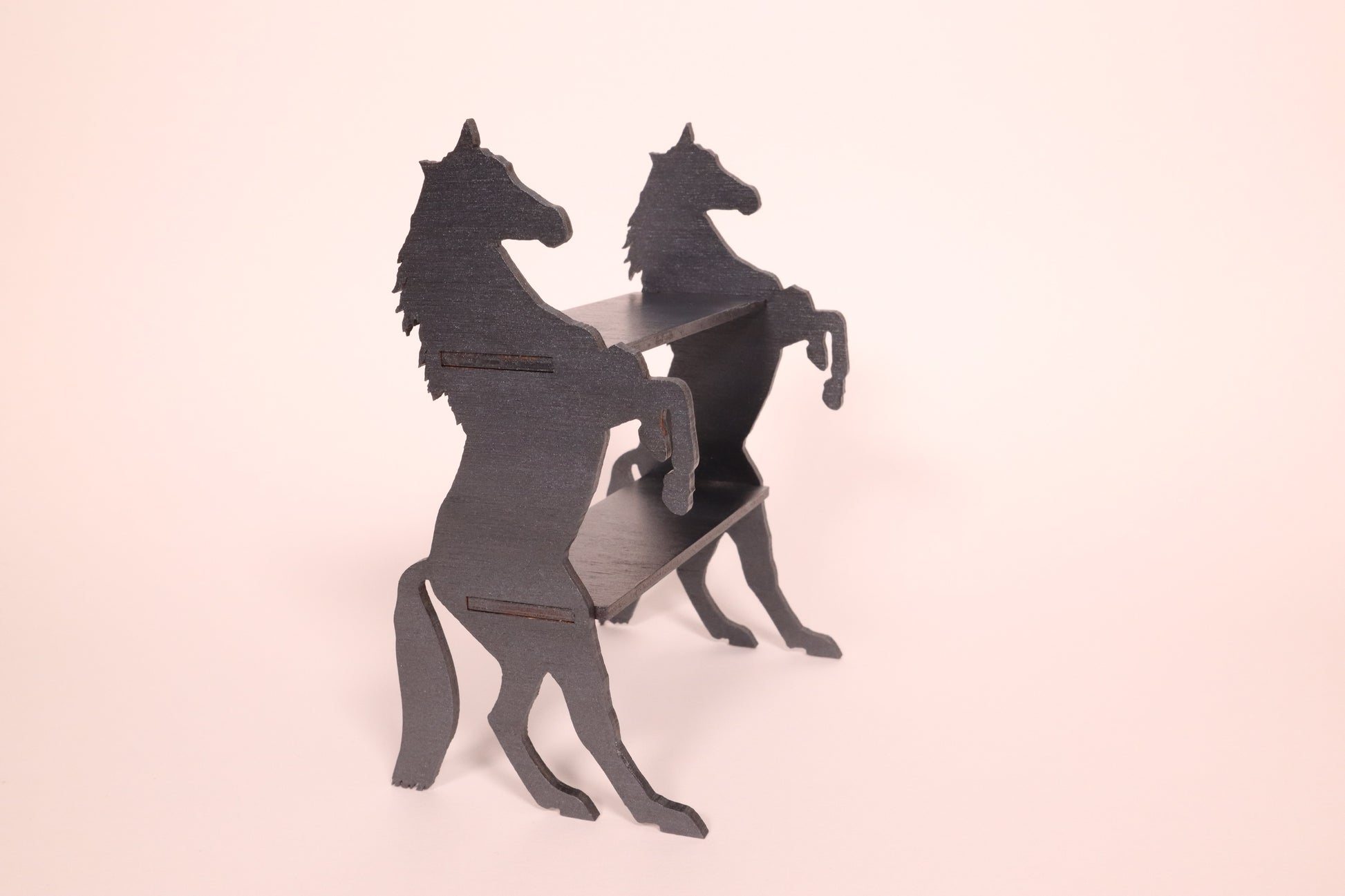 Super fun laser-cut wooden horse shelf to hold your micro minis and all sorts of other fun miniatures!  Use these to display your micros, as a prop in your scale barn, show photos, live show set ups, or?  Lots of fun possibilities!
