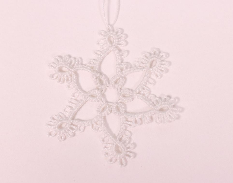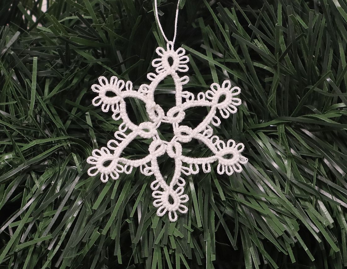This is a snowflake ornament that I made with tatting or tatted lace.  Tatting is a "lost art" that I learned from my Granny.  It is time consuming and the finished result may appear delicate, but they are actually quite durable.