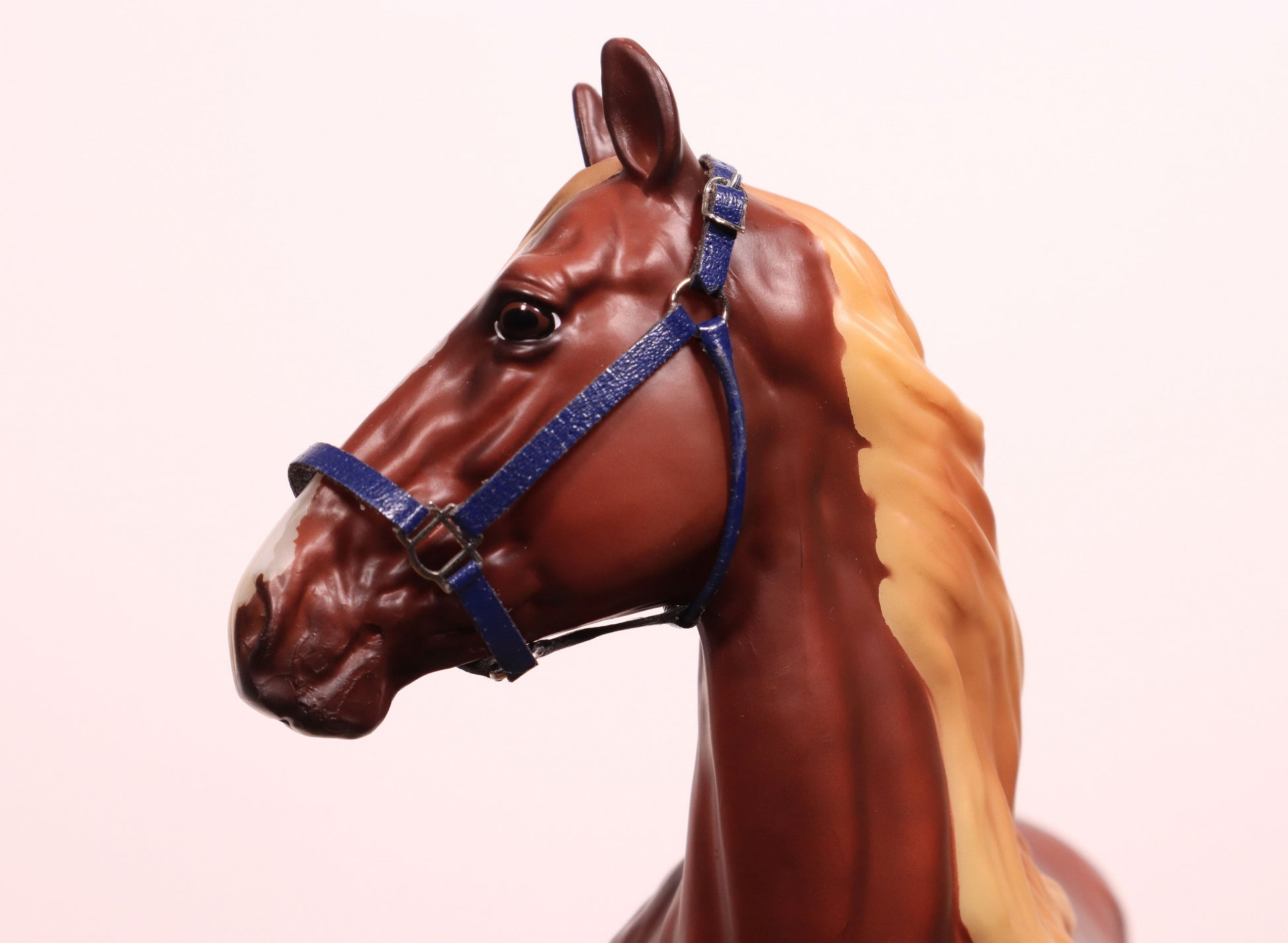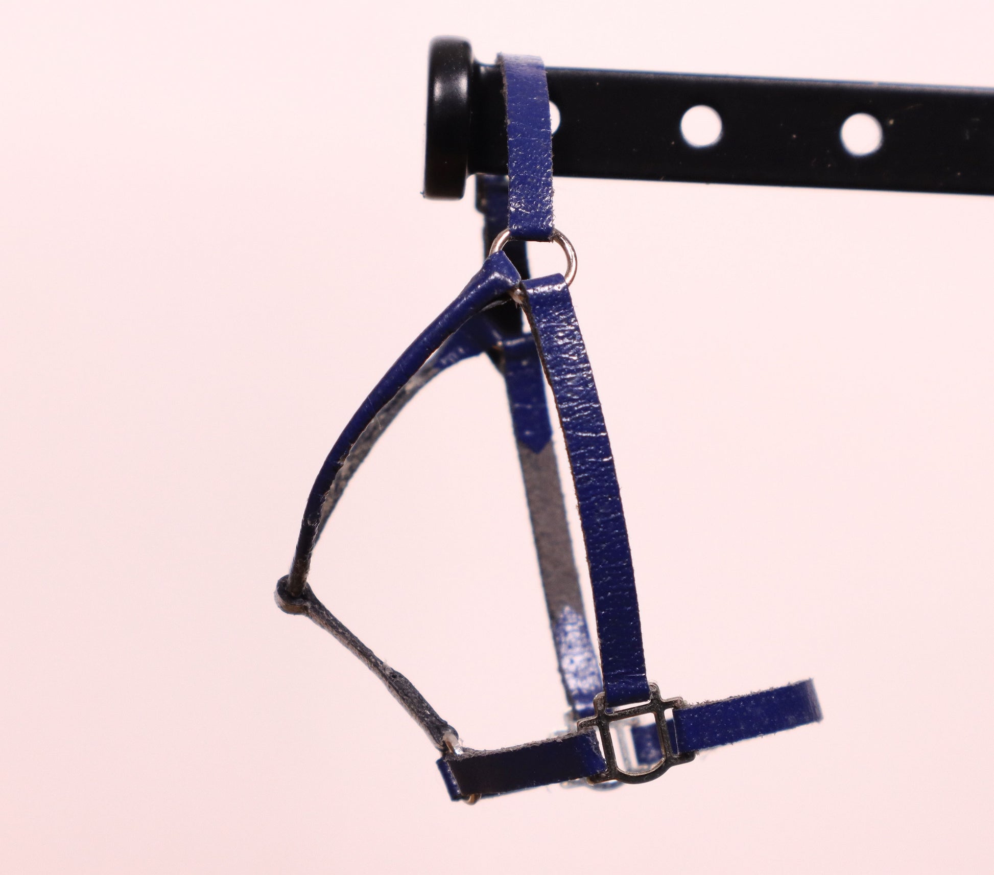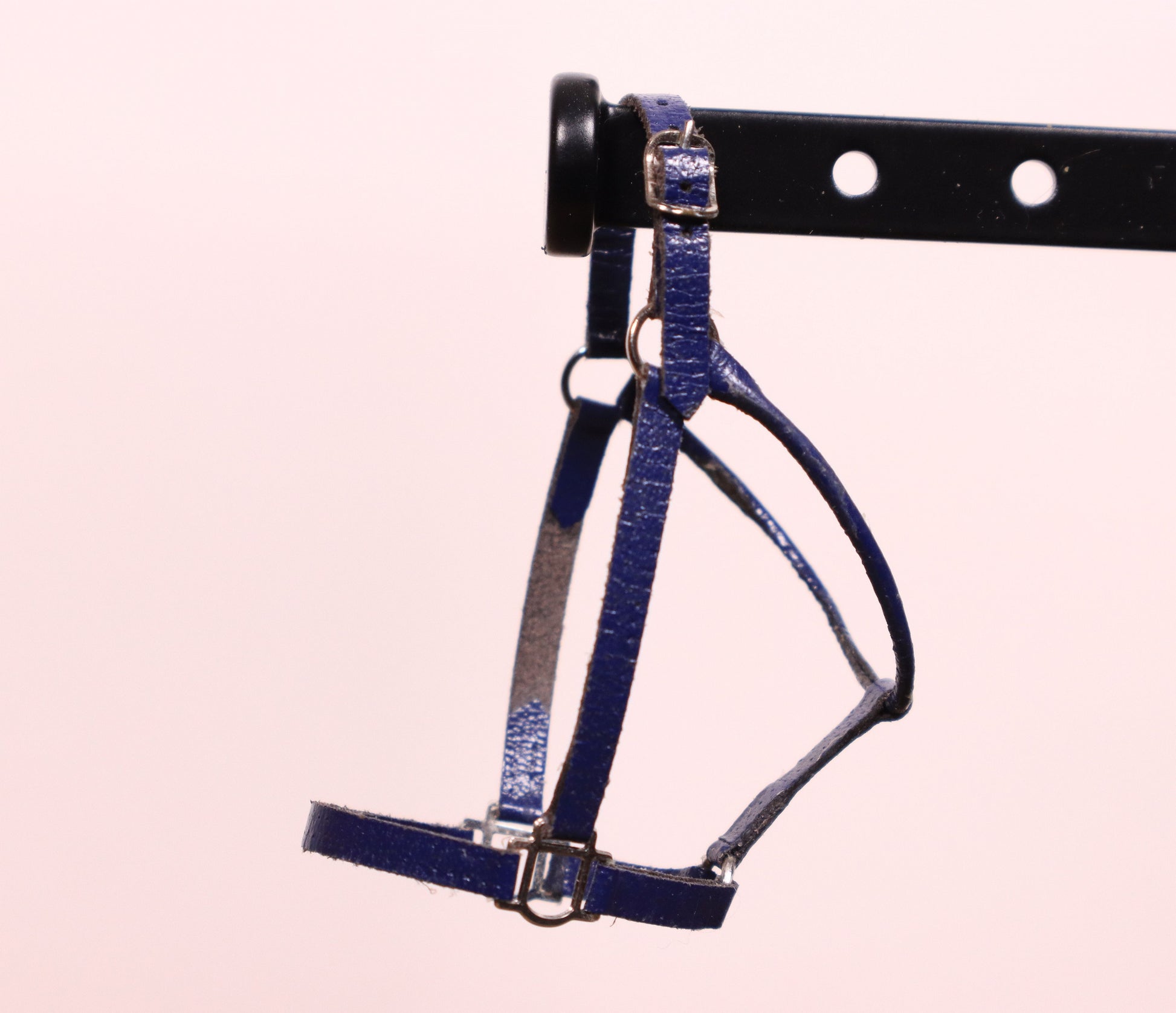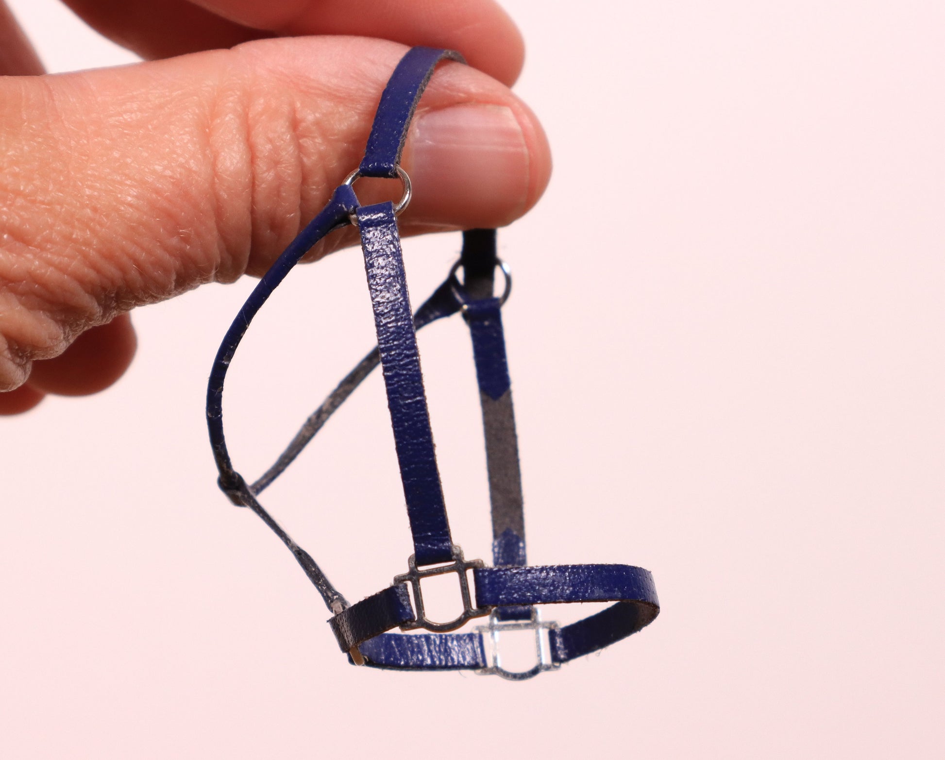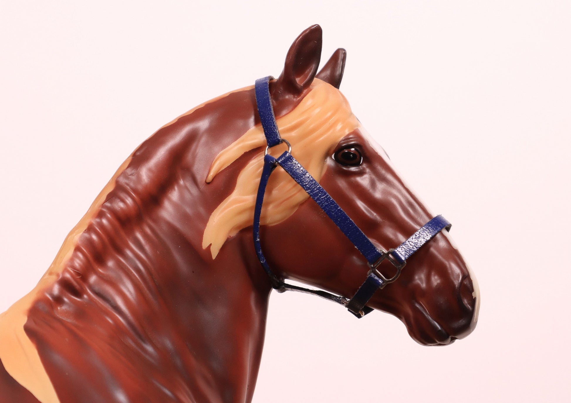 Traditional Scale Leather Halter for Breyer, Stone, other 1:9 Model Horses - Blueberry Color, Silver Hardware