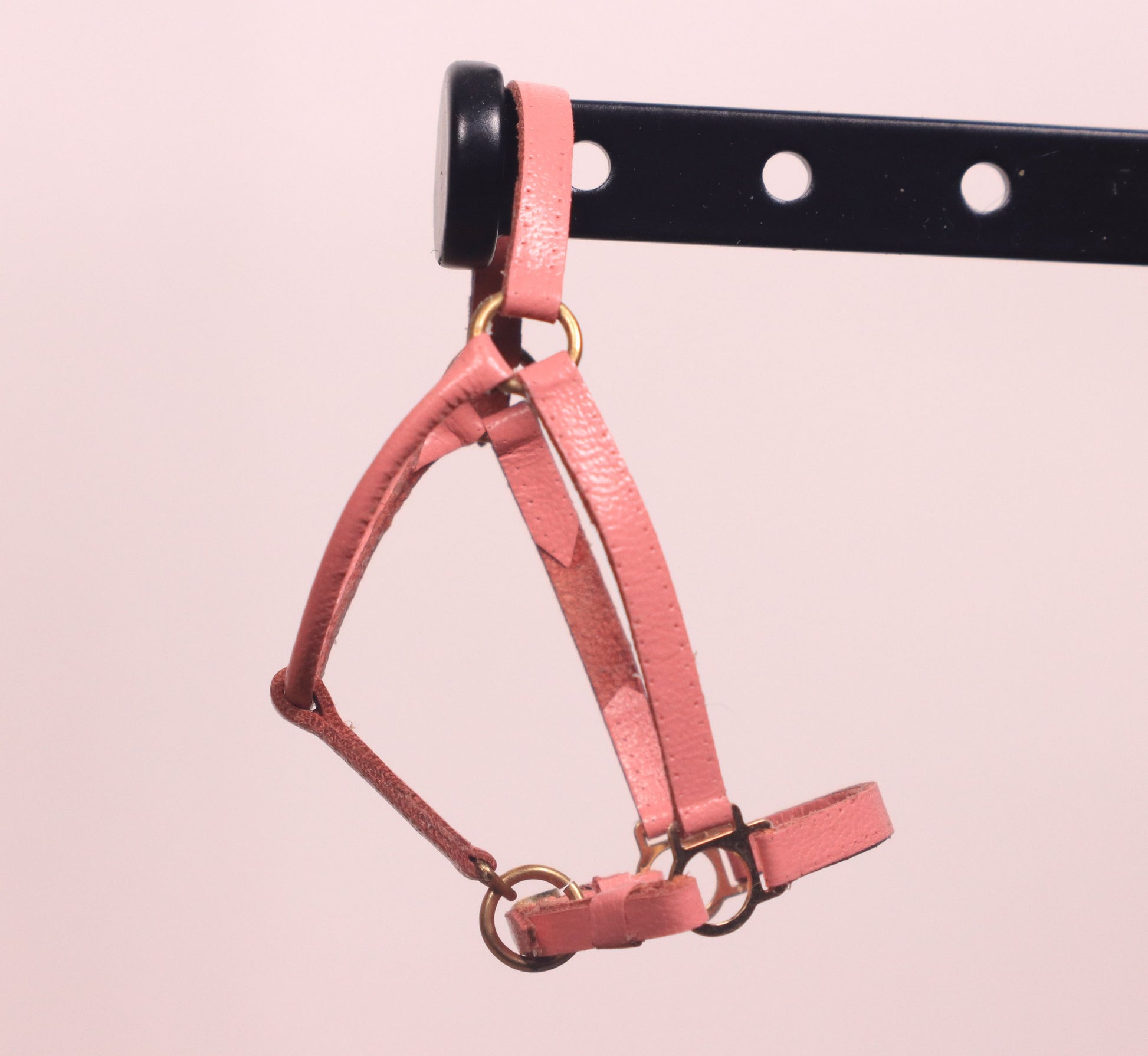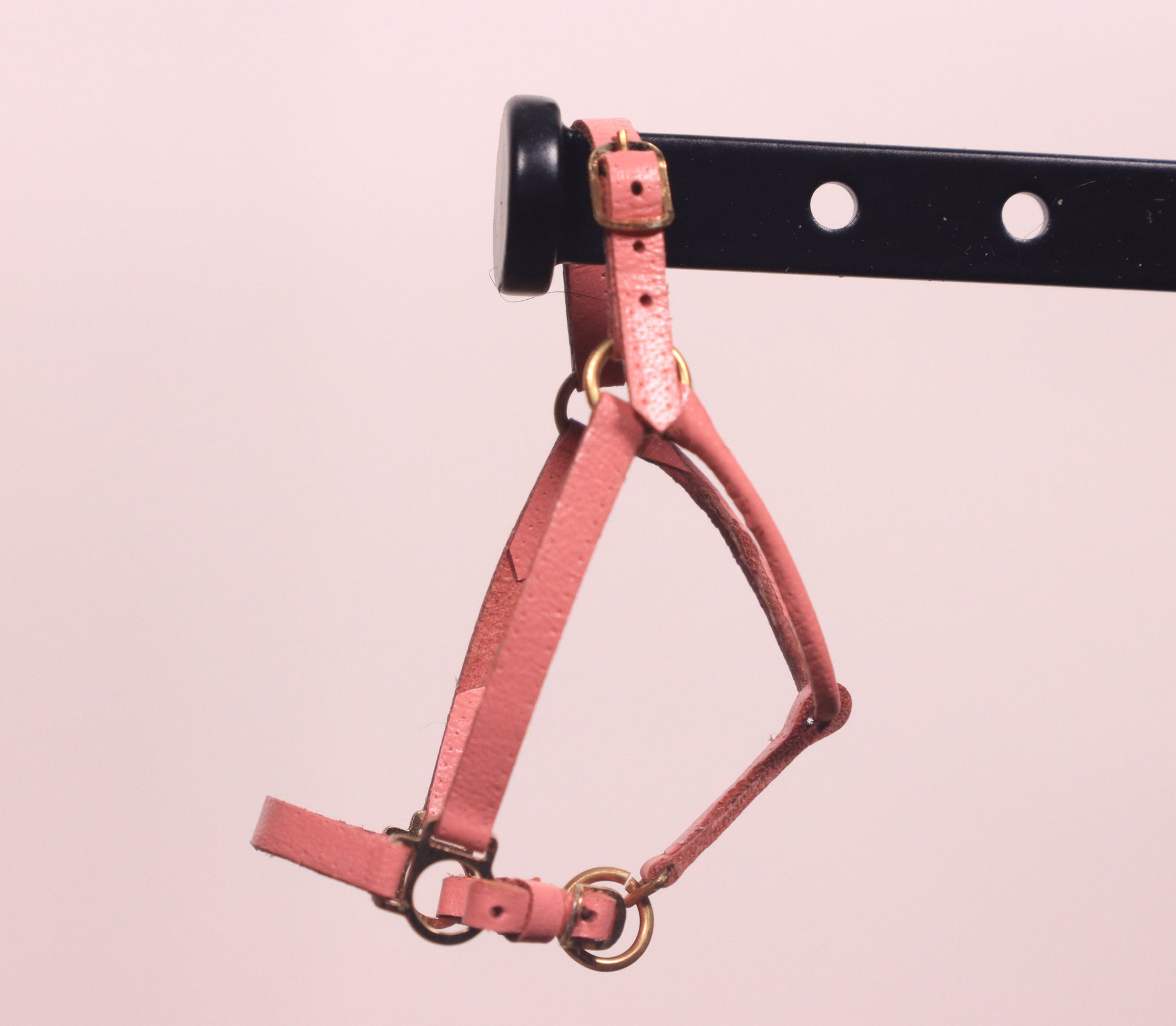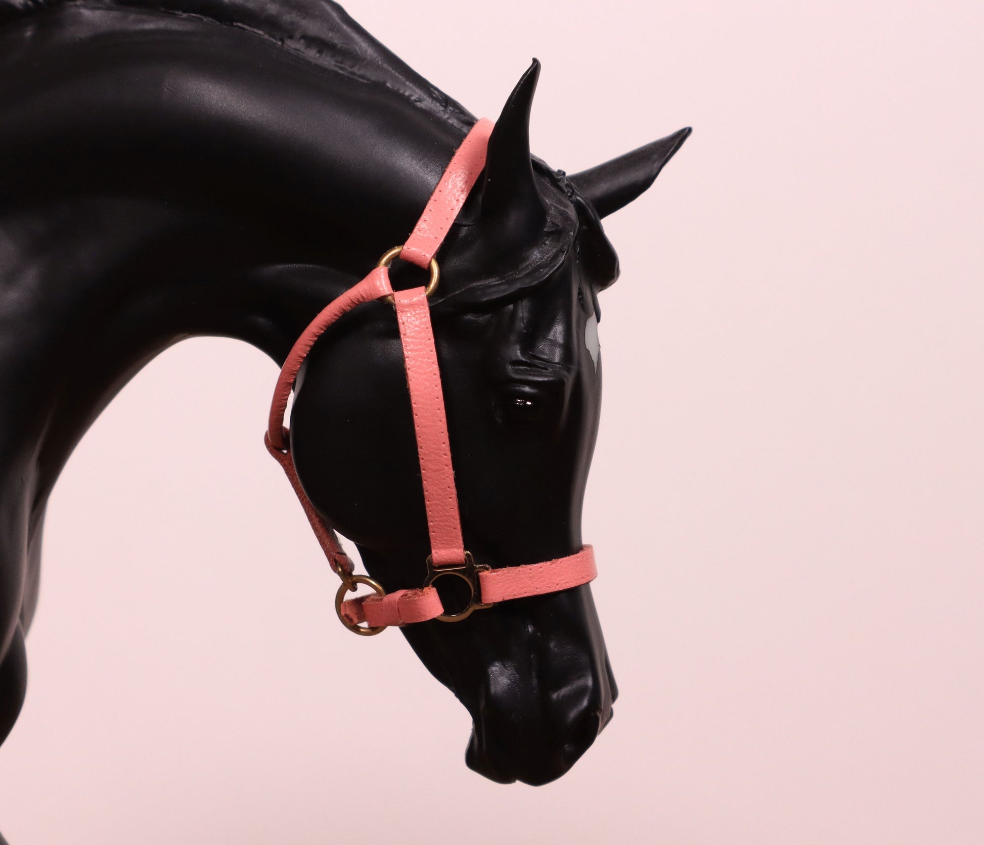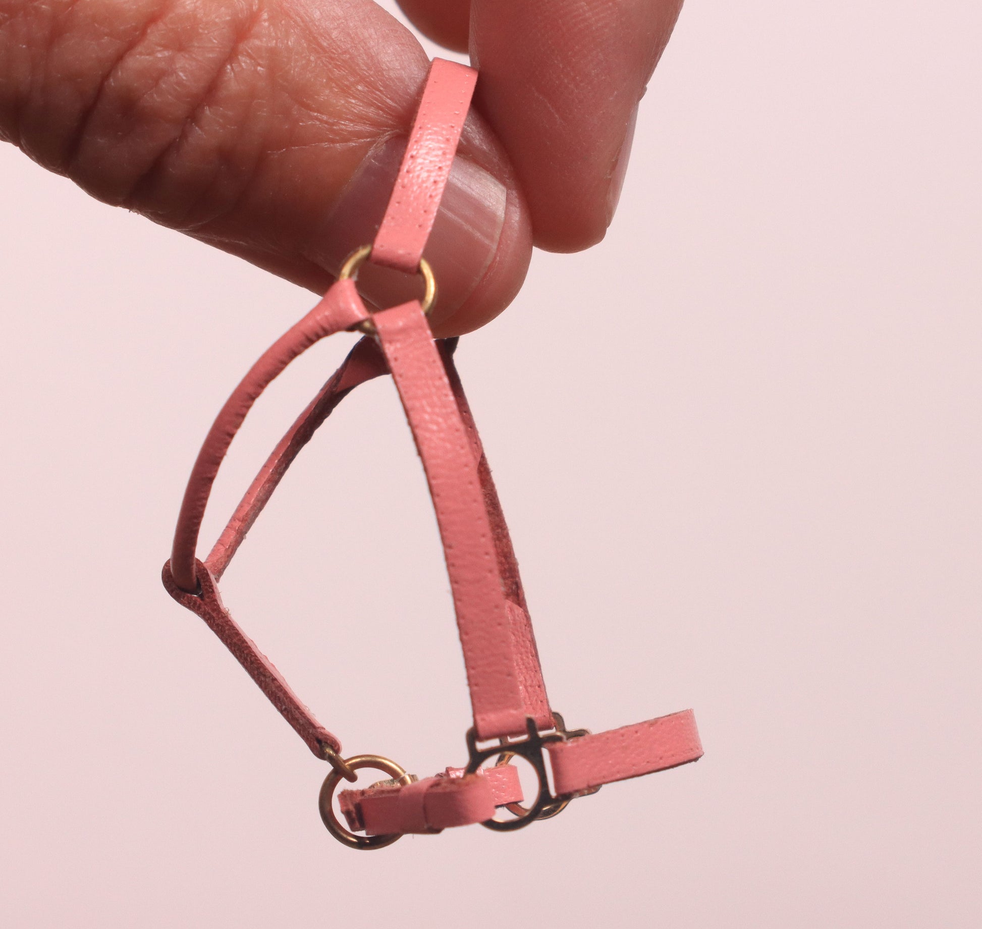 Traditional Scale Leather Halter for Breyer, Stone, other 1:9 Model Horses - Pink Color, Silver Hardware