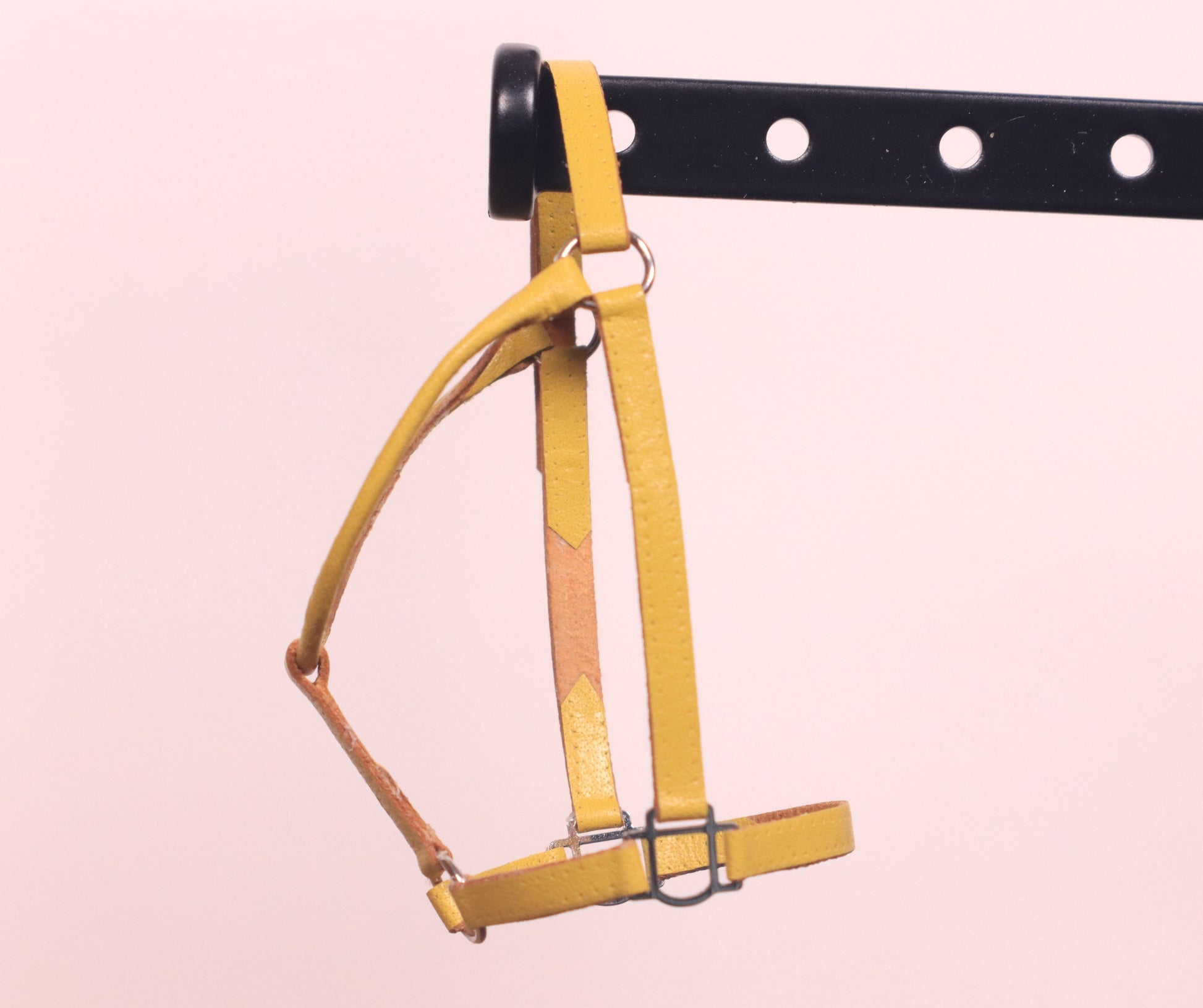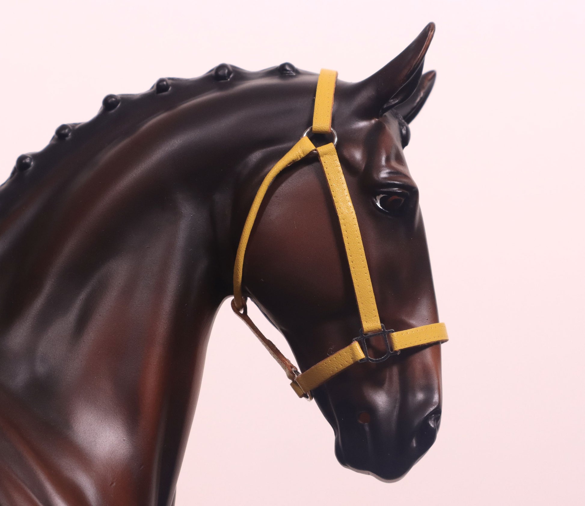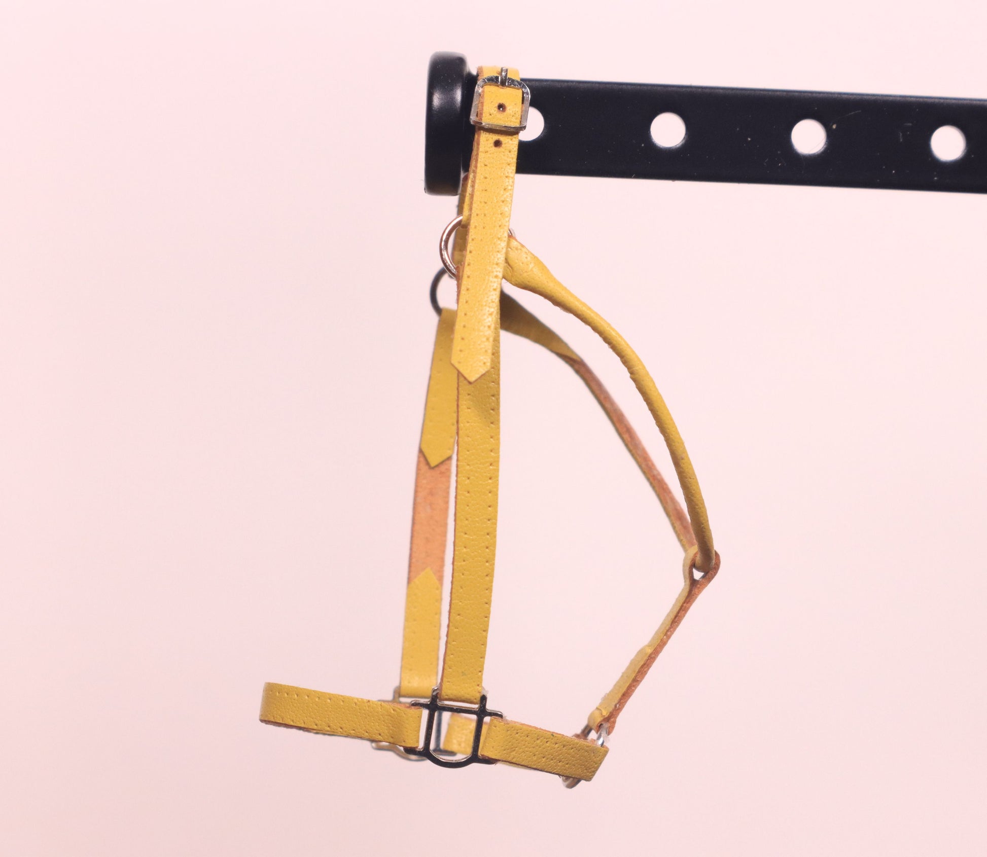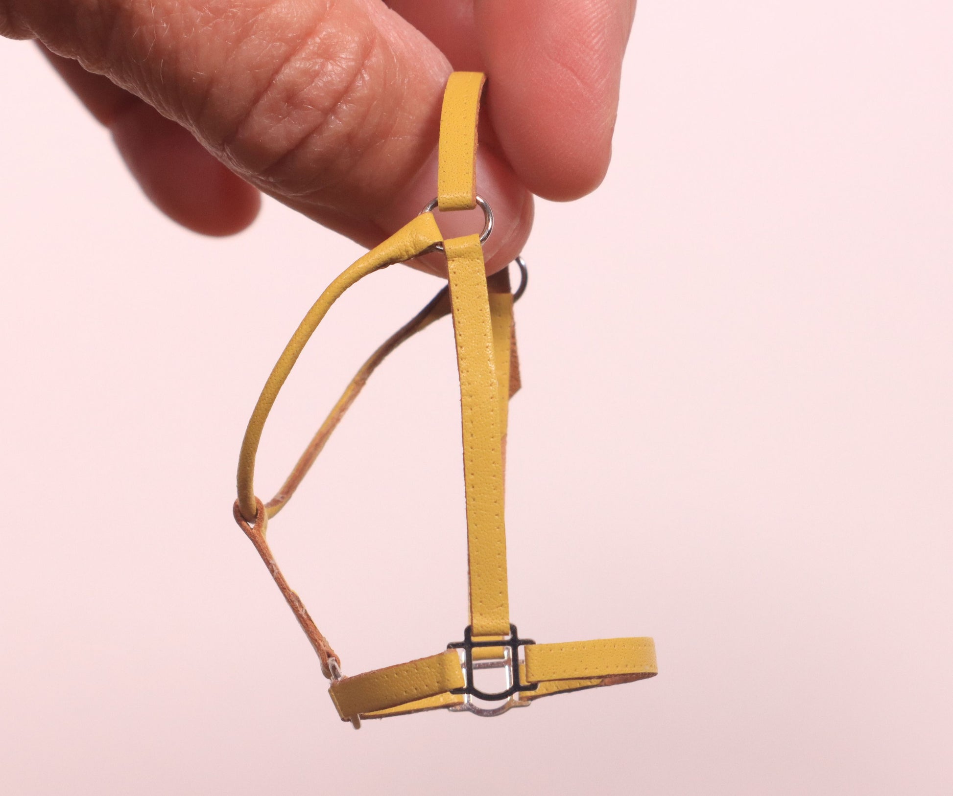 Traditional Scale Leather Halter for Breyer, Stone, other 1:9 Model Horses - Yellow Color, Silver Hardware